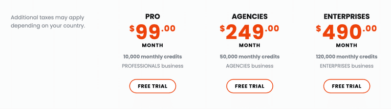 GeoRanker tilbyder tre prisplaner, der spænder fra $99 til $490/måned. Du kan vælge den pakke, der passer bedst til dine behov.