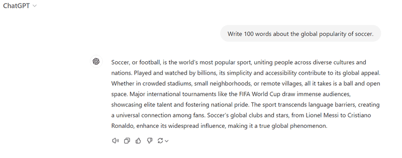 Først brugte vi ChatGPT til at generere en simpel tekst.