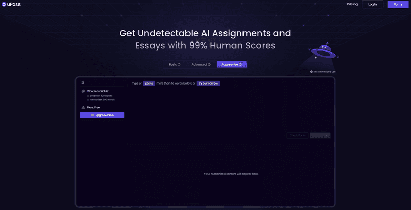 Mød derefter uPass, en af de førende AI-humanisatorer til studerende. Denne er specielt designet til at håndtere alle former for AI-genereret indhold, og det inkluderer elevessays, lektier, kursusopgaver og opgaver om emner som videnskab, historie og meget mere.