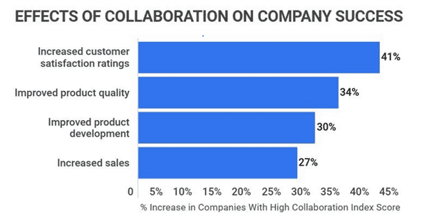Teamsamarbejde betyder, at dine medarbejdere vil arbejde sammen om at producere arbejde af høj kvalitet. Til gengæld fører arbejde af høj kvalitet til større kundetilfredshed. Desuden viser forskning, at teamsamarbejde kan øge kundetilfredsheden med op til 41%.
