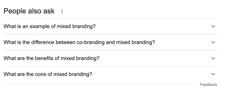 Pärast potentsiaalsete asjakohaste märksõnade läbivaatamist leidsin märksõna, mille järgi ma võiksin potentsiaalselt pingerida - Mixed Branding.