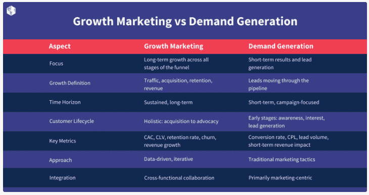 Aveți nevoie atât de strategii de marketing de creștere, cât și de strategii de generare a cererii pentru a vă dezvolta brandul. Cu toate acestea, generarea cererii se concentrează mai mult pe eforturi și obiective pe termen scurt pentru afacerea dvs.